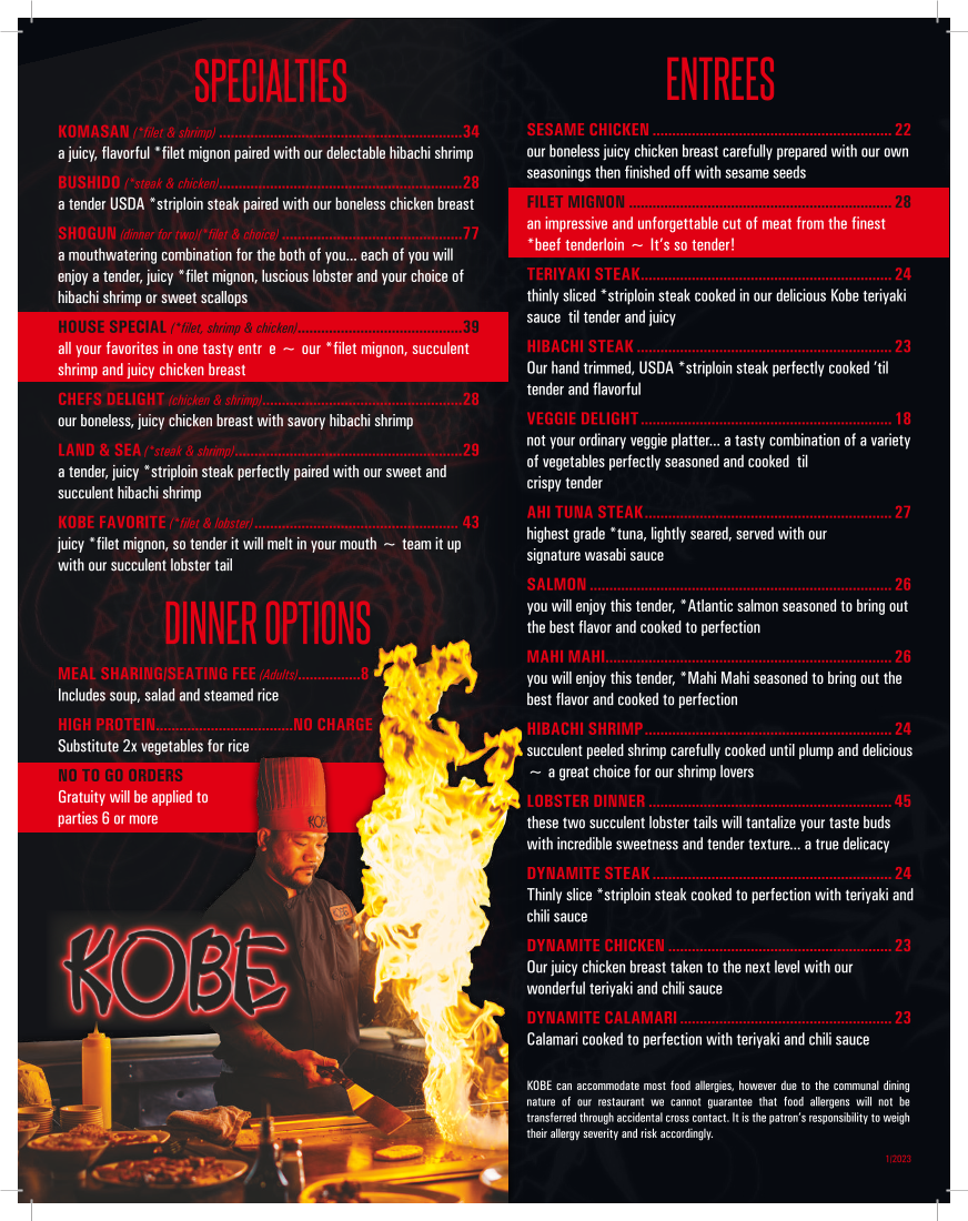 If you're craving a top-tier dining experience, look no further than Kobe Steak House Of Japan Menu. Located at 8760 W 21st St in Wichita, Kansas, this spot offers a mouth-watering selection of steaks and Japanese-inspired dishes that will leave you coming back for more. The menu features a variety of options, from perfectly seared cuts of Kobe beef to sizzling seafood and fresh vegetables, all cooked right before your eyes on the grill. The vibrant flavors and expertly crafted dishes make every visit feel like a celebration. Whether you're in the mood for a light appetizer or a hearty entrée, Kobe Steak House offers something for every palate, ensuring a memorable meal every time.